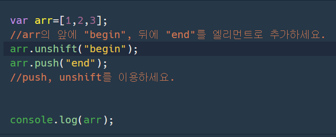.unshift(element) : 배열 앞에 엘리먼트 추가