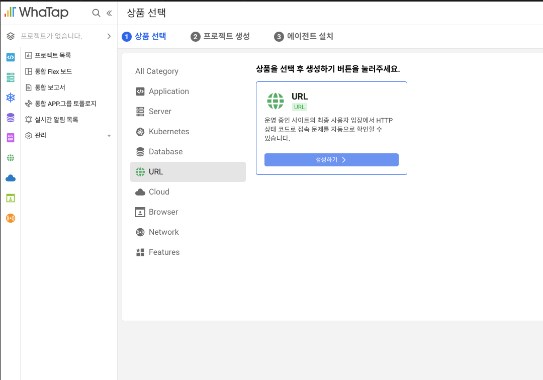 그리고 URL 모니터링을 선택 후 생성하기를 클릭하여 프로젝트를 생성합니다