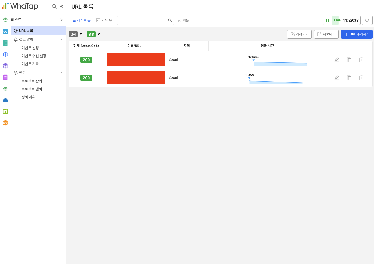 • 통합 대시보드: 여러 URL을 한 화면에서 관리