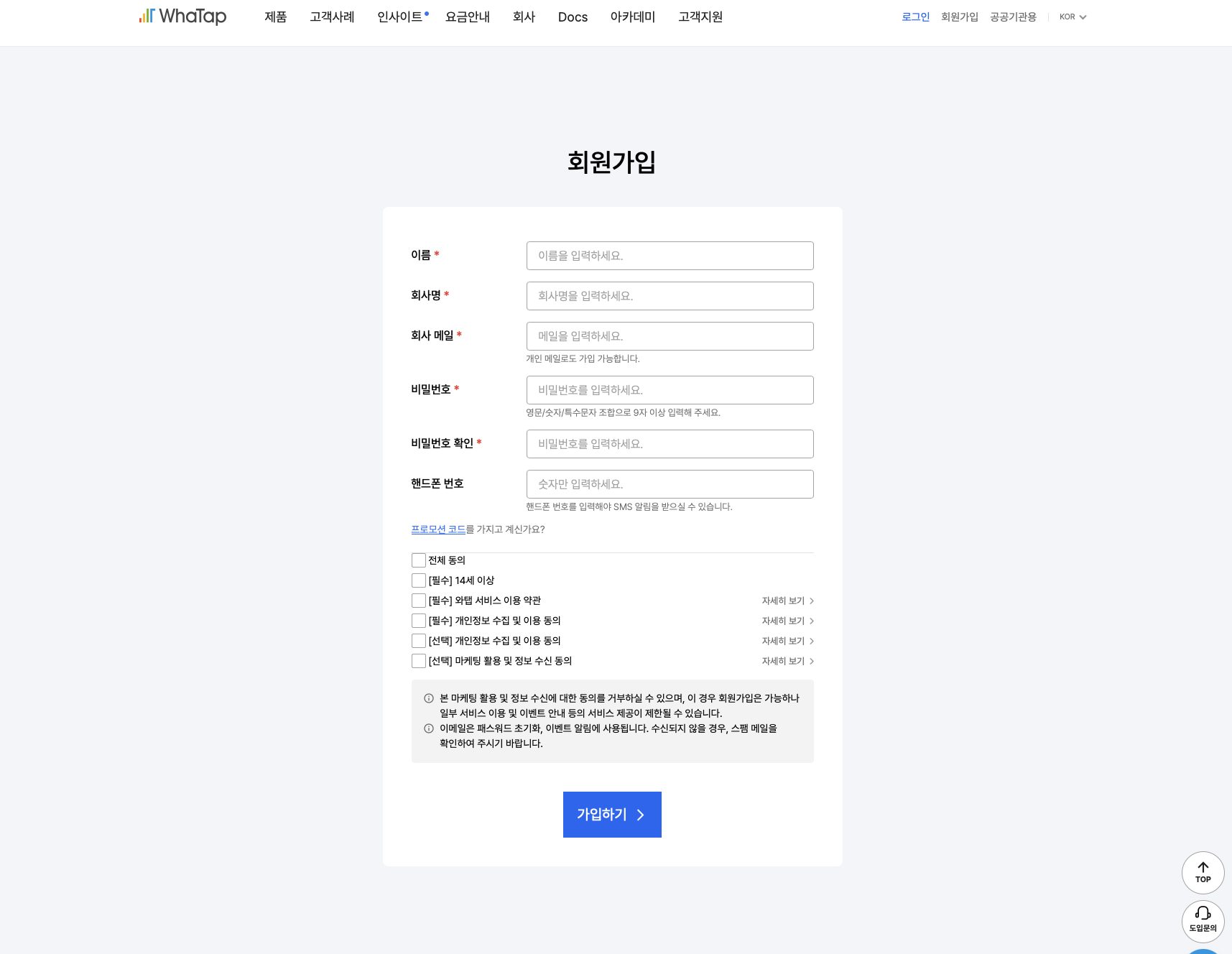2. 우측 상단의 "회원가입" 버튼 클릭