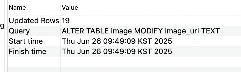그래서 선택한 방법은 첫번째 방법인 직접 컬럼 타입을 TEXT로 변경하는 것이다.