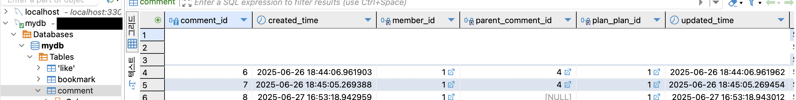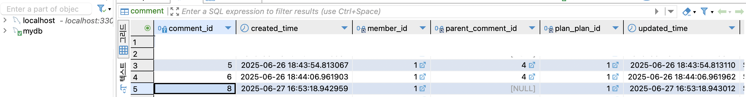 DB에도 자식 댓글이 그대로 남아있는 걸 확인할 수 있었다.