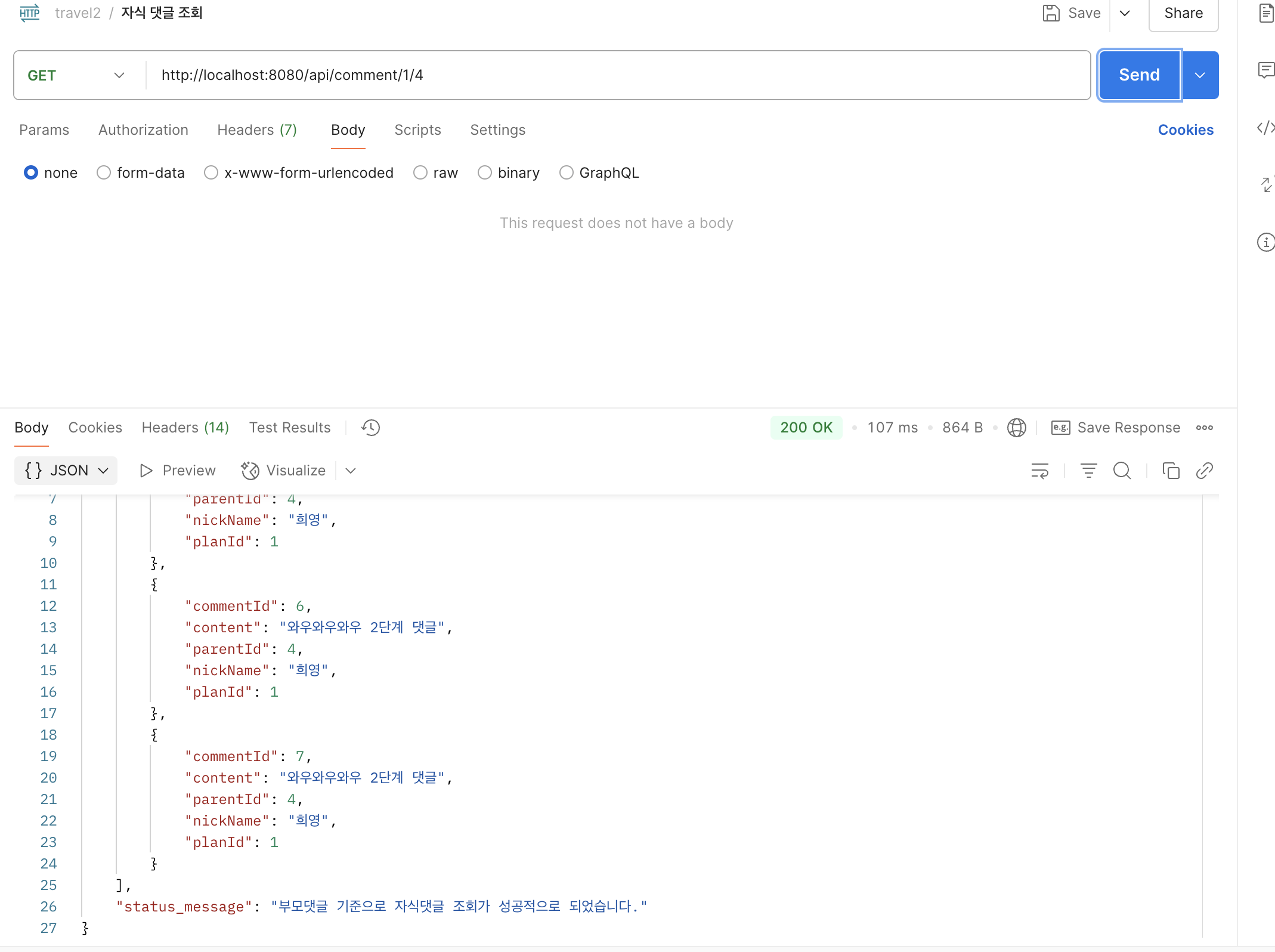 해당 부모의 자식 댓글을 조회하는 컨트롤러를 만들었다.