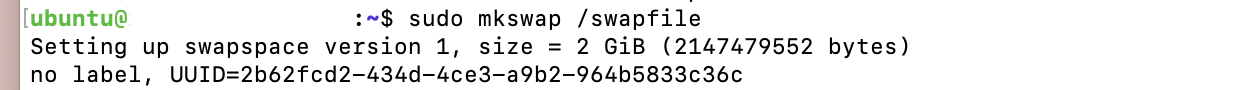 지금 만든 /swapfile을 실제로 swap으로 활성화하는 명령이다.