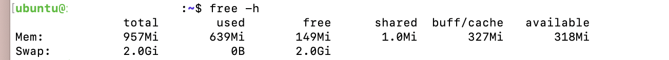 시스템 RAM 용량이 2GB 이하일 때 권장 스왑 공간은 RAM 용량의 2배이기 때문에 사용 중인 EC2의 메모리가 1GB이므로, 스왑 메모리를 2GB로 설정한다.