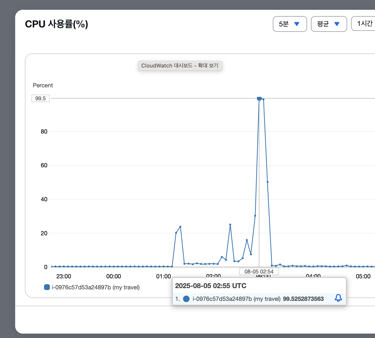 EC2 t2.micro는 1vCPU / 1GB 메모리의 매우 가벼운 인스턴스라서 바로 다운된다