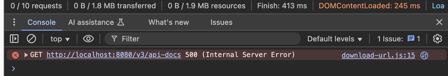 이번에는 500 에러 발생하였다.