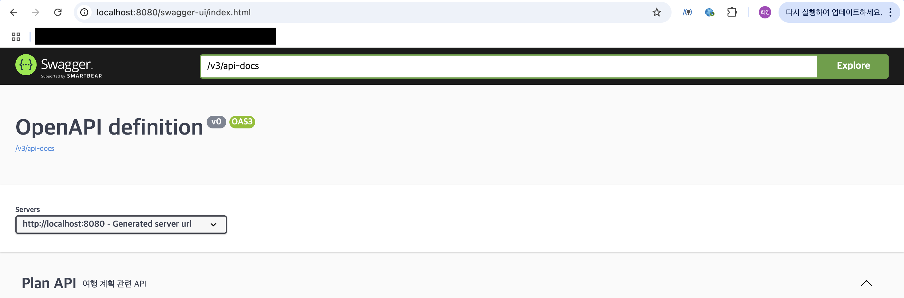 spring dox 의 경우는 http://localhost:8080/swagger-ui/index.html로 접근해야 한다.