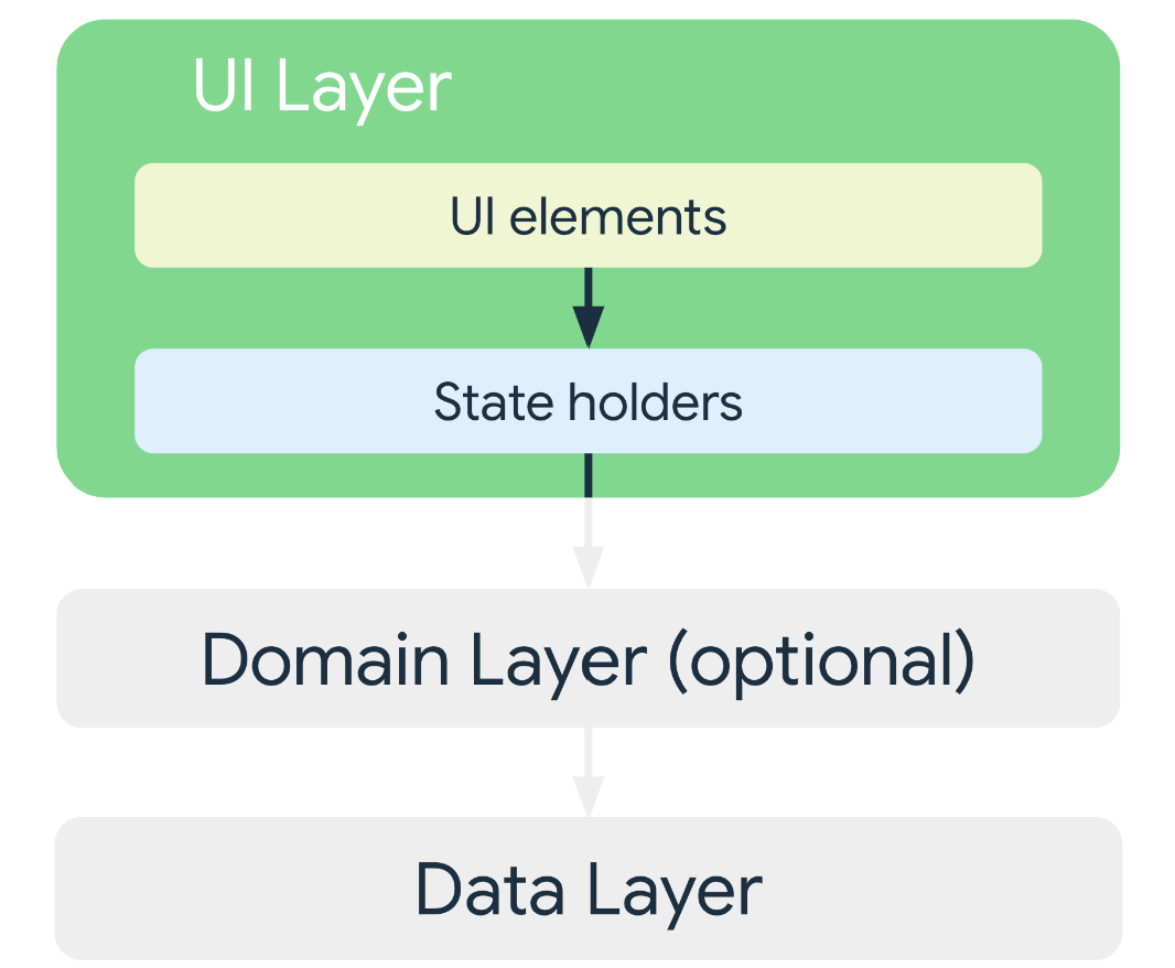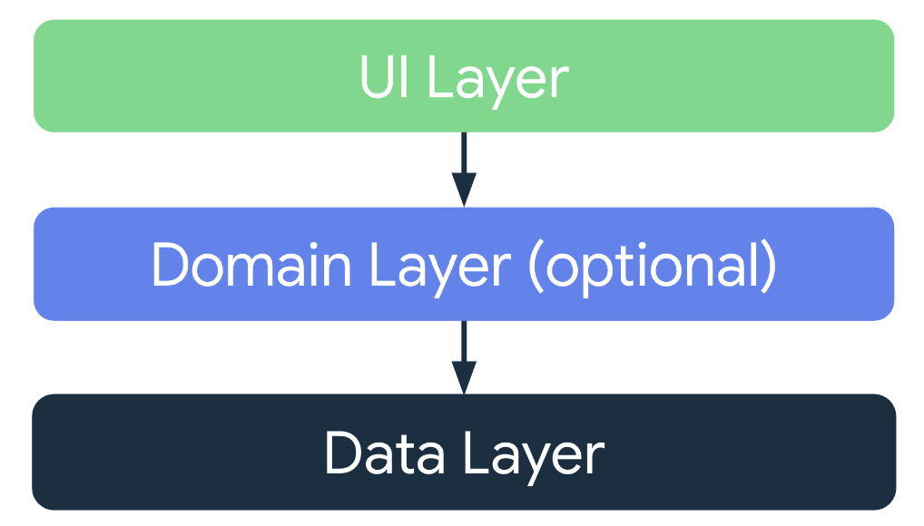 Domain Layer는 써있는 것처럼 optional이다. UI와 데이터 레이어 간의 상호작용을 간소화하고 재사용하기 위해 쓰인다. 이후 자세히 다뤄보기로 하자.