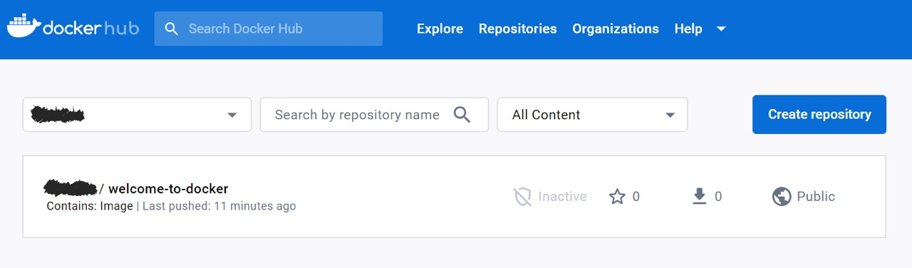 Menu -> Images -> hyoojuu/welcome-to-docker -> Action -> Push to Hub