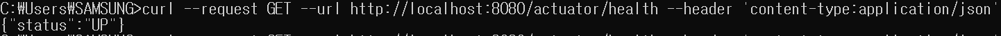 $ curl --request GET --url http://localhost:8080/actuator/health --header 'content-type:application/json'