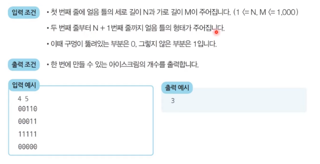dfs 함수의 return 값이 True인 경우에만 result를 증가시켜 아이스크림의 개수를 구한다.