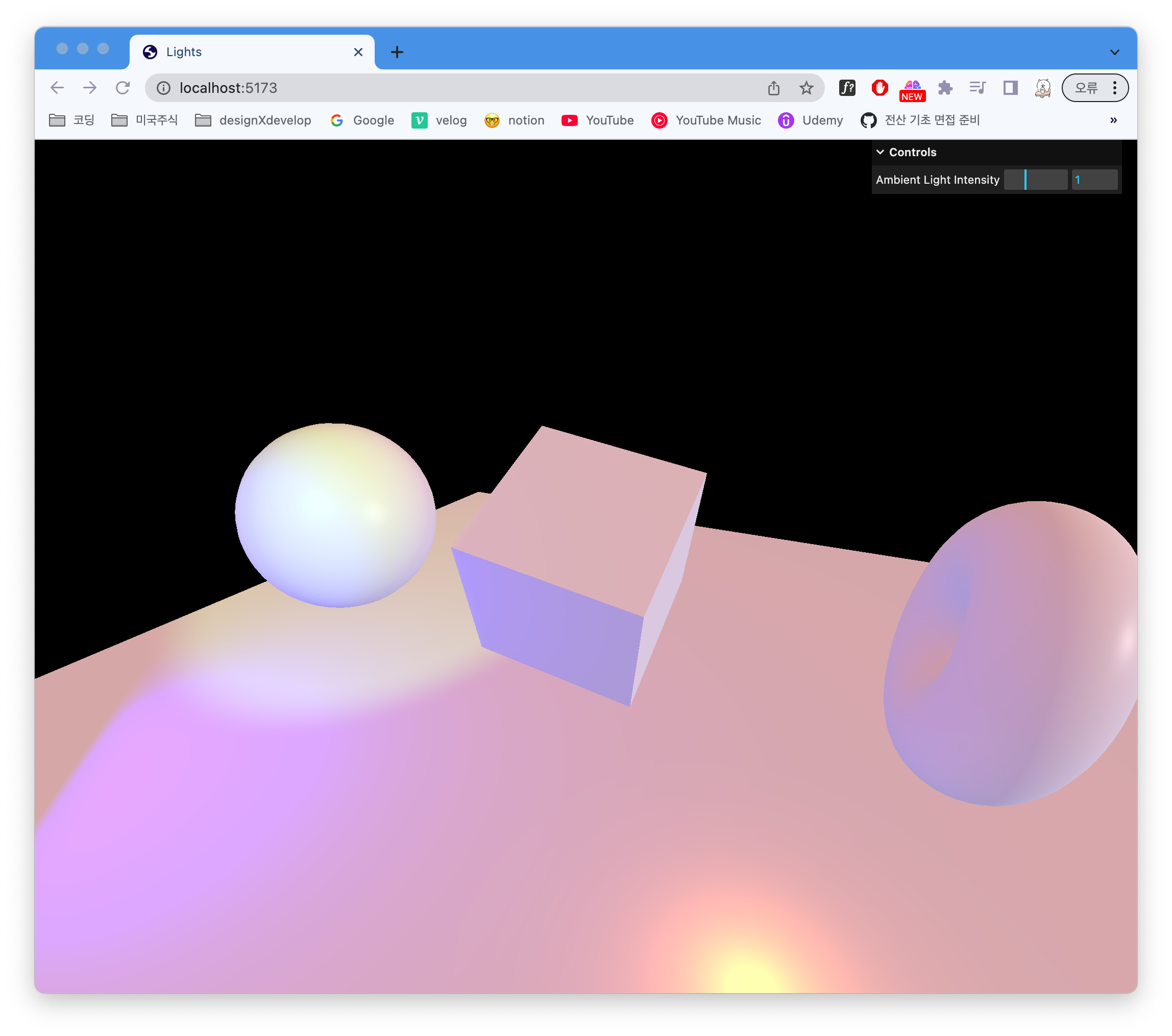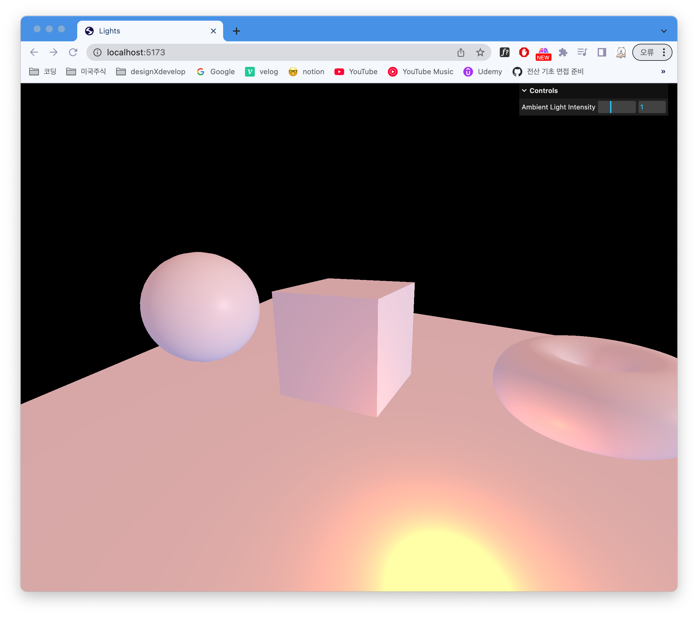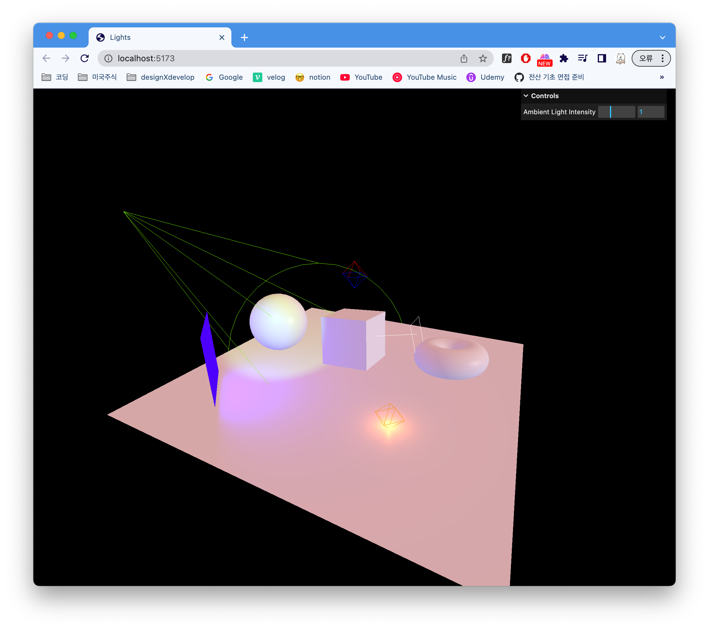 Three.js에서 Light(조명)은 3D 씬(Scene) 내에서 객체의 조명과 그림자를 결정하는 중요한 요소입니다. 조명을 사용하면 입체감, 반사, 그림자, 분위기 효과를 조정할 수 있습니다.