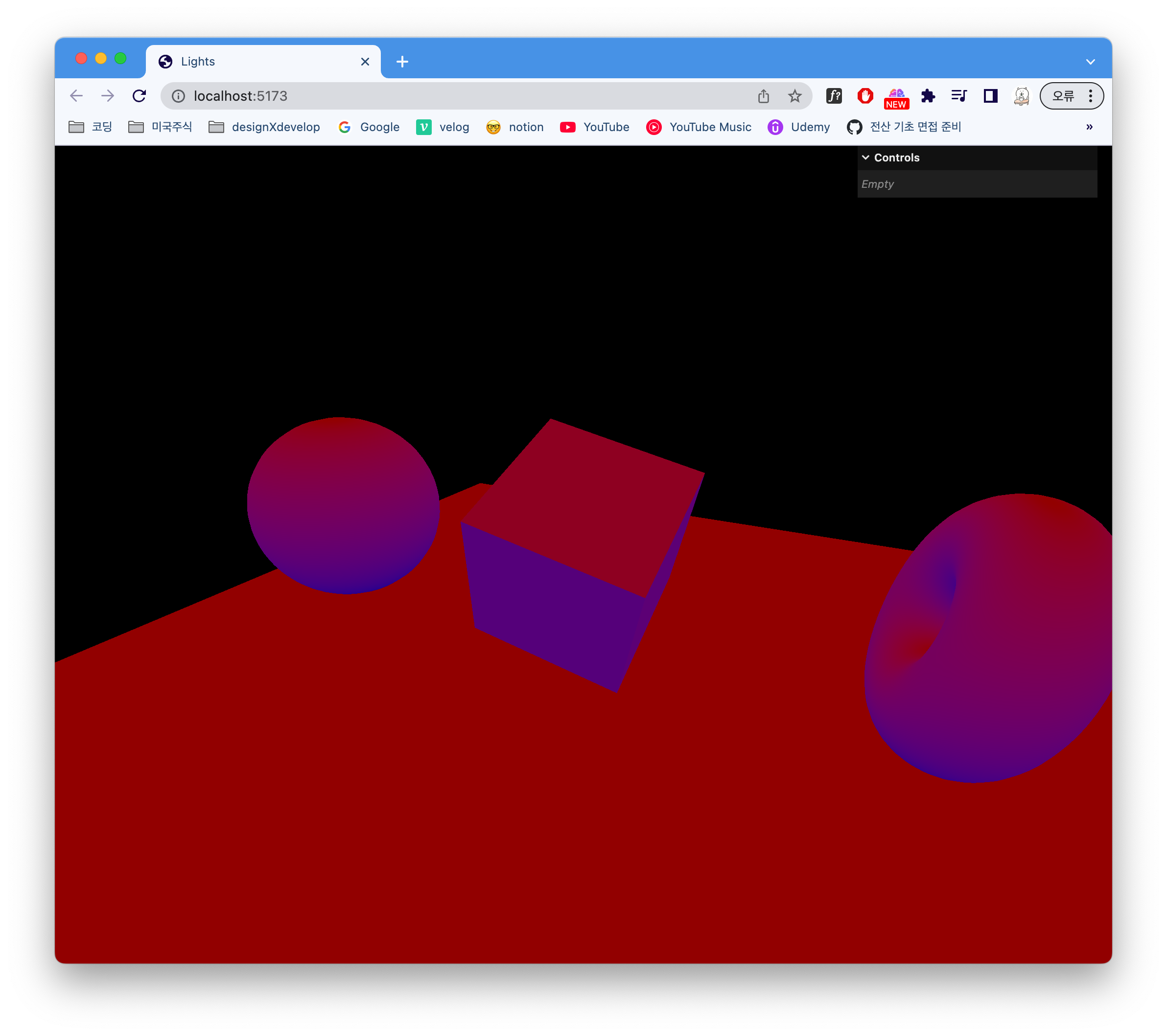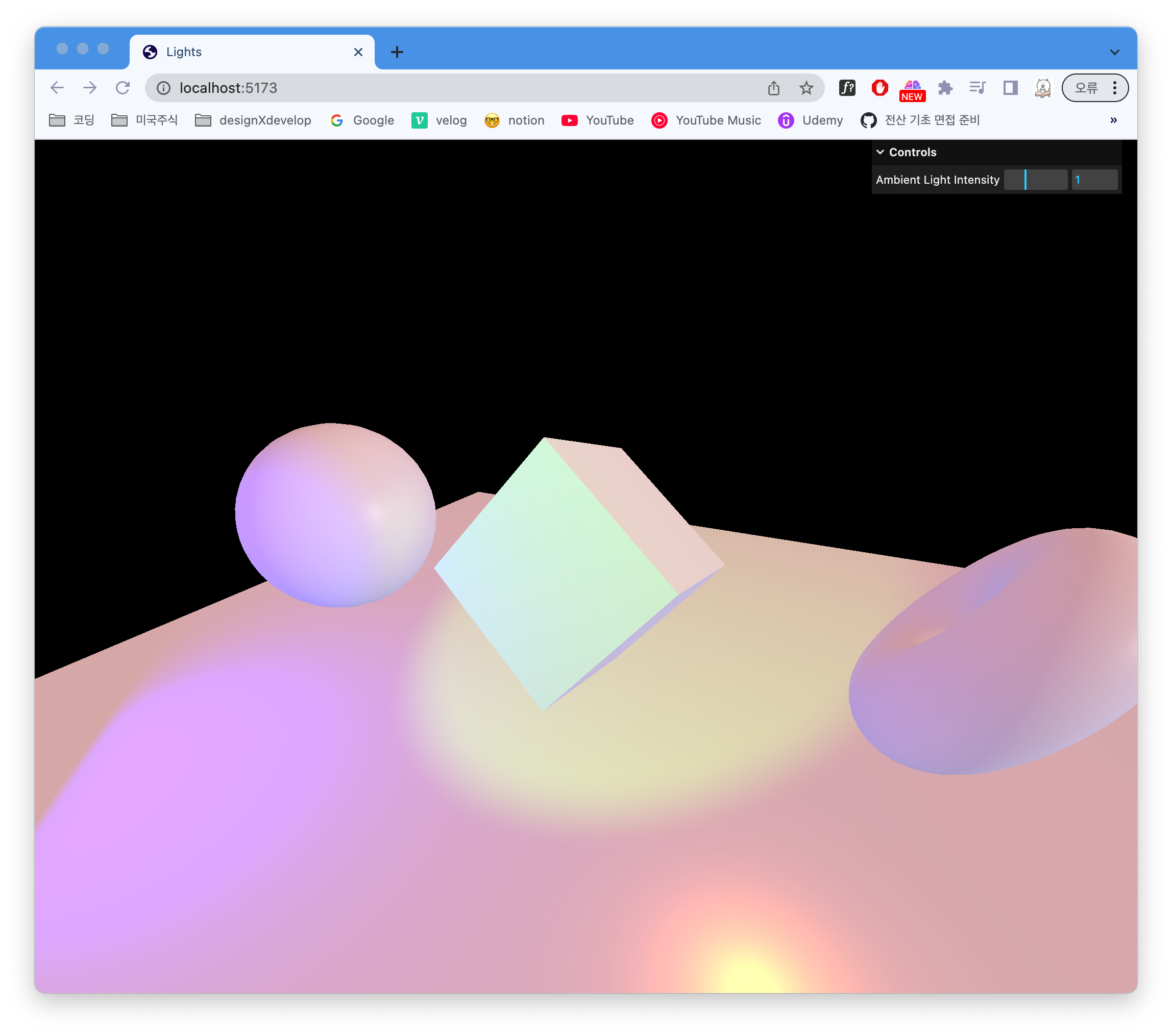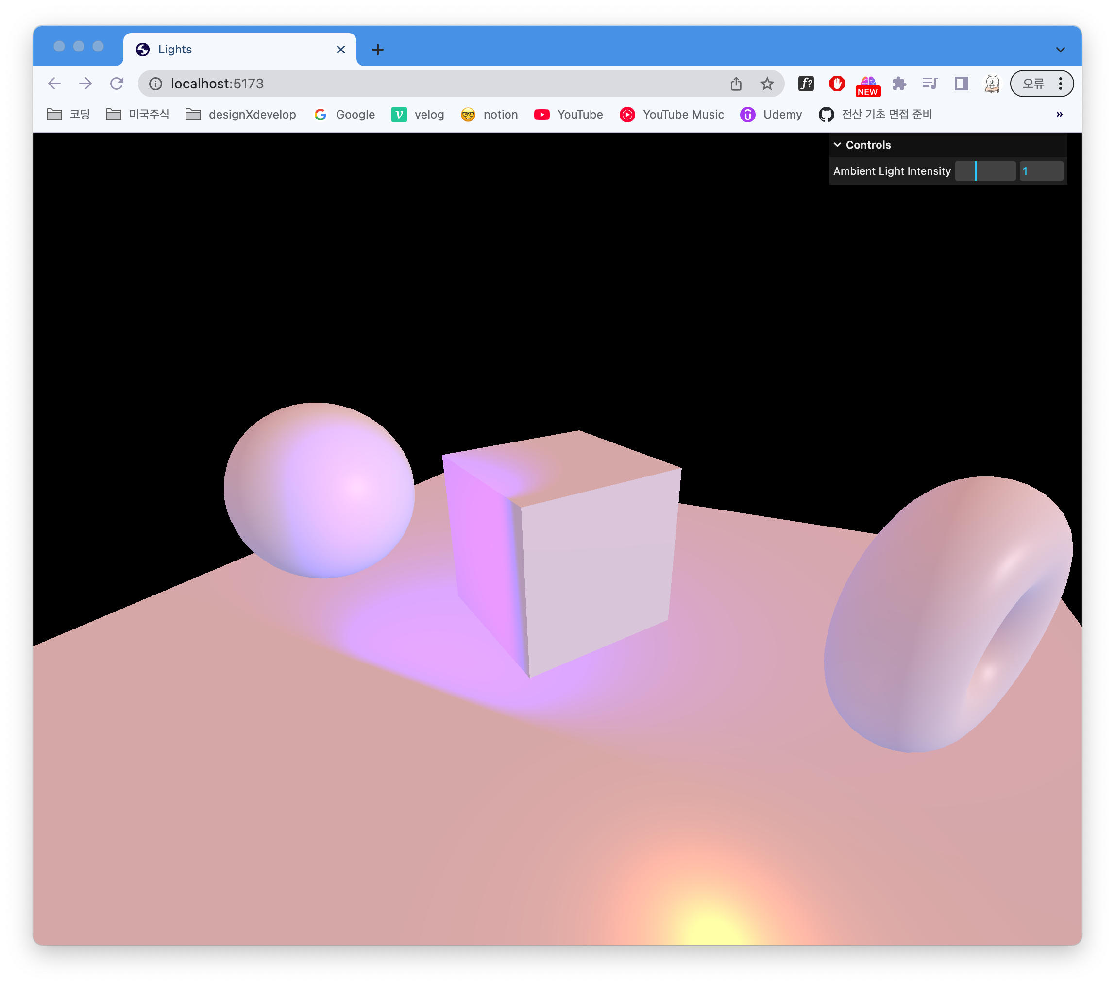 AmbientLight, HemisphereLight 적은 비용DirectionalLight, PointLight 중간 비용SpotLight, RectAreaLight 많은 비용