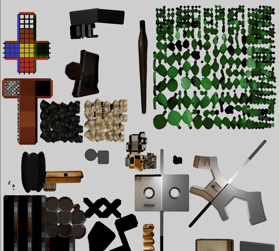 그림자가 없음 (모든 객체가 동일한 밝기로 표시됨)