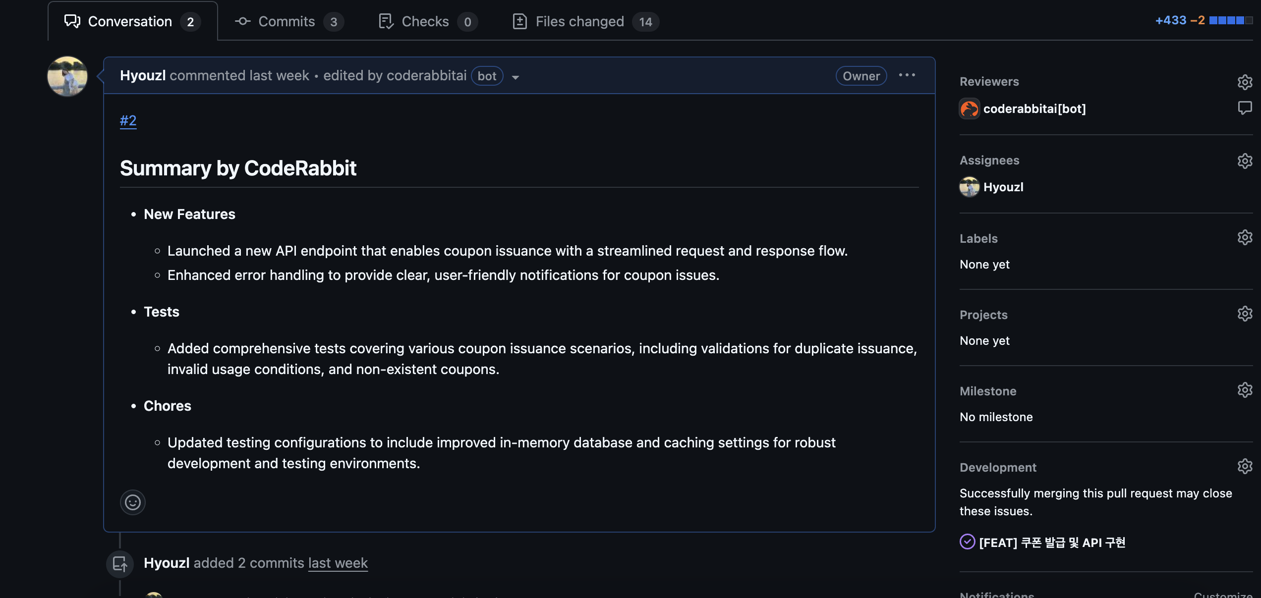 한국말 설정을 해주기 전에 pr 을 작성해서 영어로 리뷰가 작성 되었다 😅