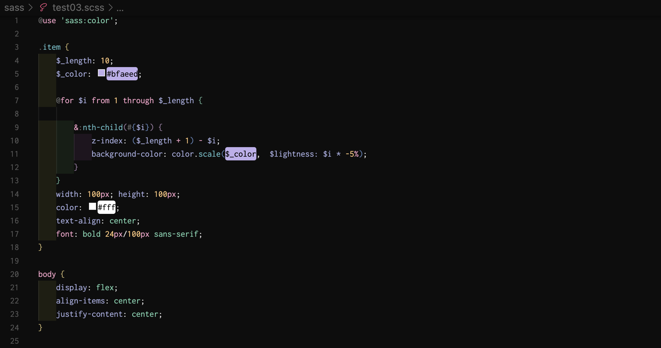 이때 색상값을 하나하나 직접 계산해서 넣기 귀찮다면 색상함수인 scale()을 사용해 보자!!