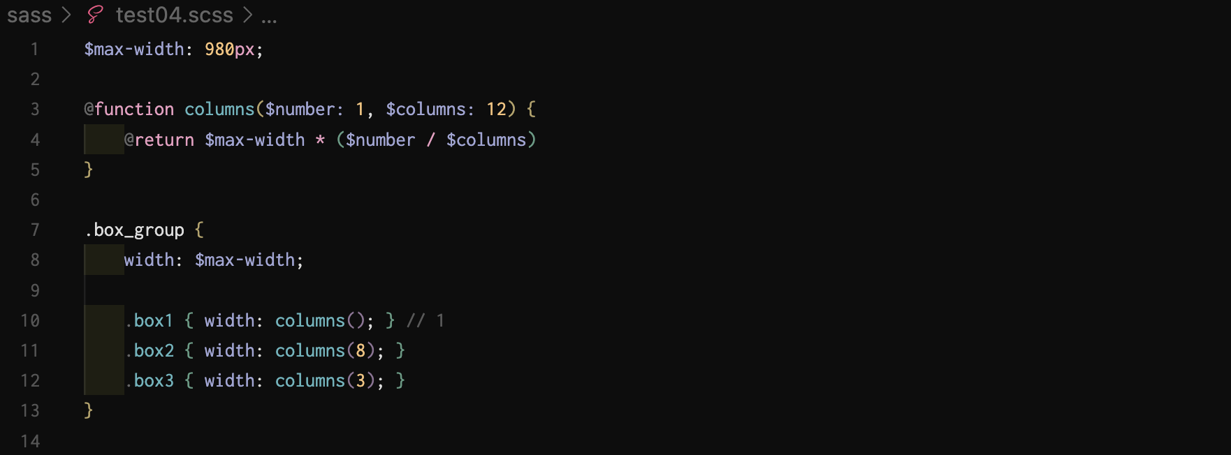 - mixin은 @include 지시어를 사용하지만 function은 function의 이름으로 바로 사용한다.