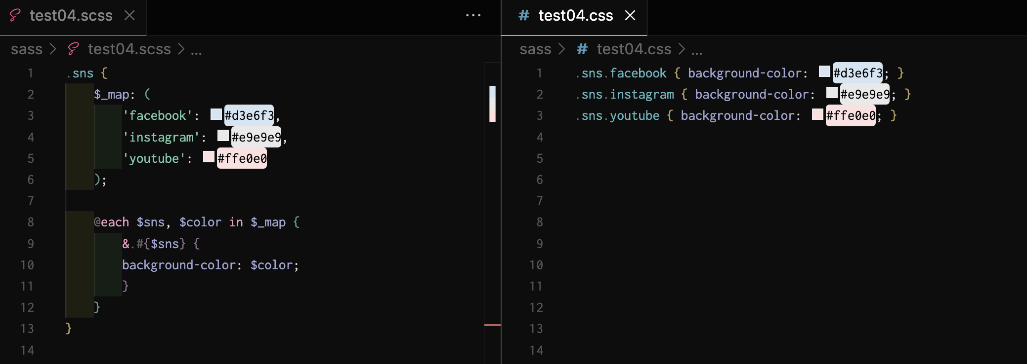$_map: ( 'facebook': #d3e6f3, 'instagram': #e9e9e9, 'youtube': #ffe0e0 );