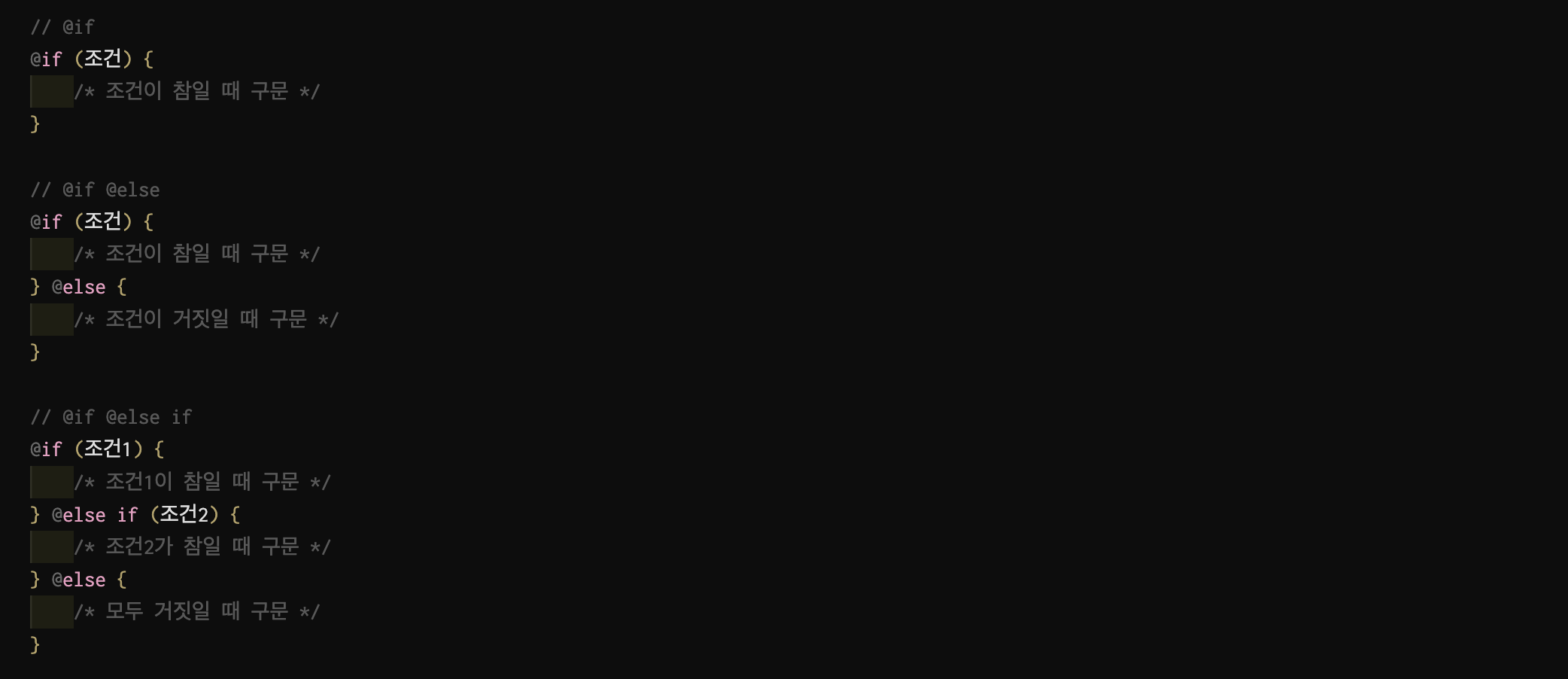 - @each {현재 요소}, {현재 요소의 값} in {변수}