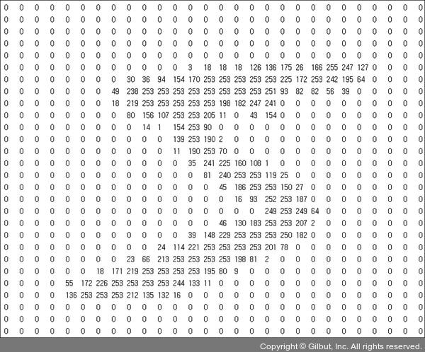 위의 이미지를 밝기 정도에 따라 0~255로 등급 매김