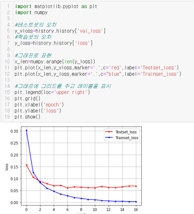 (12)테스트셋 오차값이 10번이내로 개선되지 않으면 멈춤