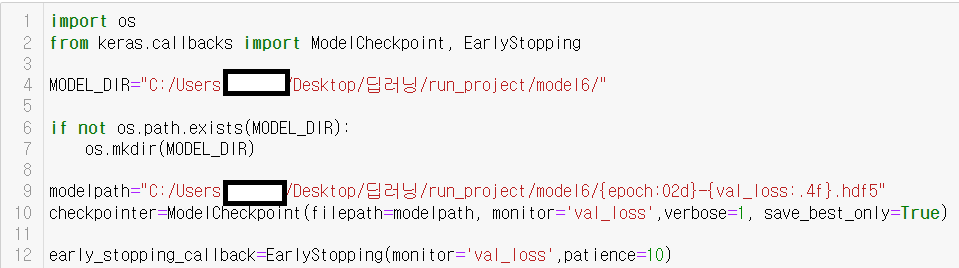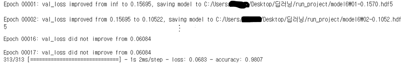 (10) 테스트셋 오차값을 모니터하여 해당 값이 개선되는 모델만 저장