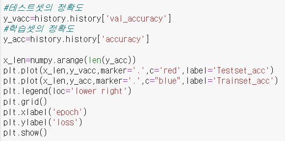 val_accuracy: 테스트셋 정확도/ accuracy: 훈련셋 정확도