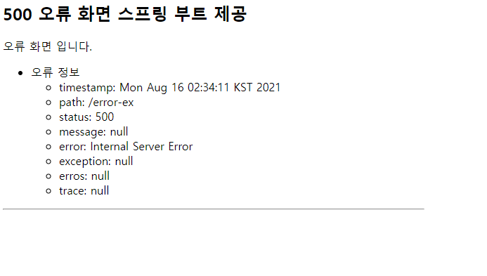 <h2>500 오류 화면 스프링 부트 제공</h2>