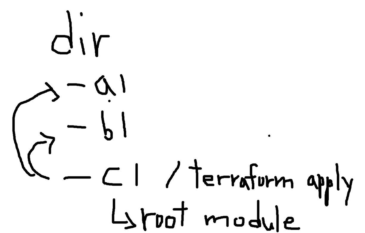 하지만 c에서 terraform apply하는 것이 아니라 a에서 terraform apply를 한다면 a가 root 모듈이 된다.