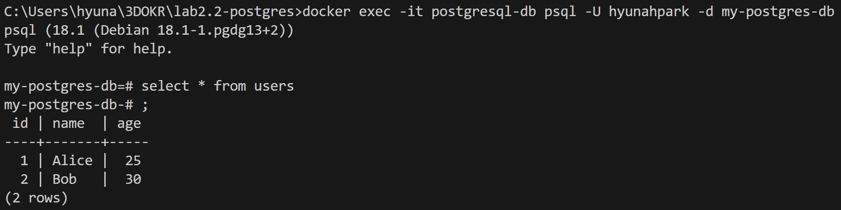 C:\Users\hyuna\3DOKR\lab2.2-postgres>docker exec -it postgresql-db psql -U hyunahpark -d my-postgres-db