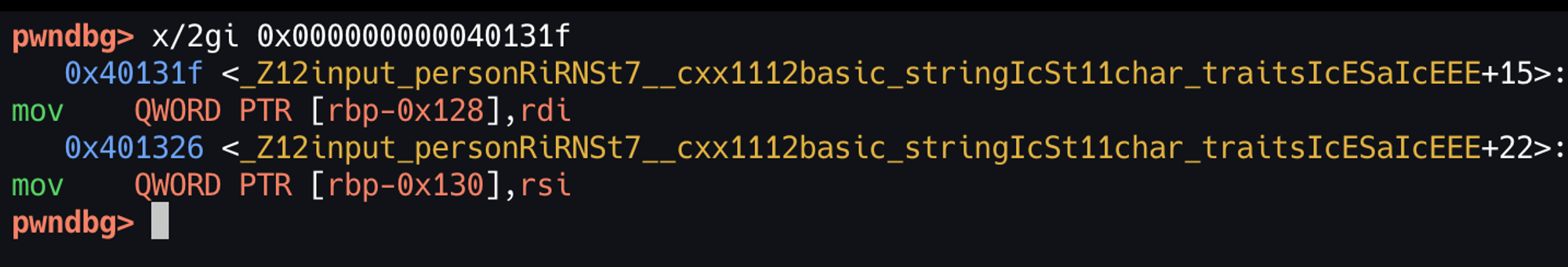 x64 calling convention에 따라 input_person의 매개변수가 스택에 위와 같이 저장된다.
