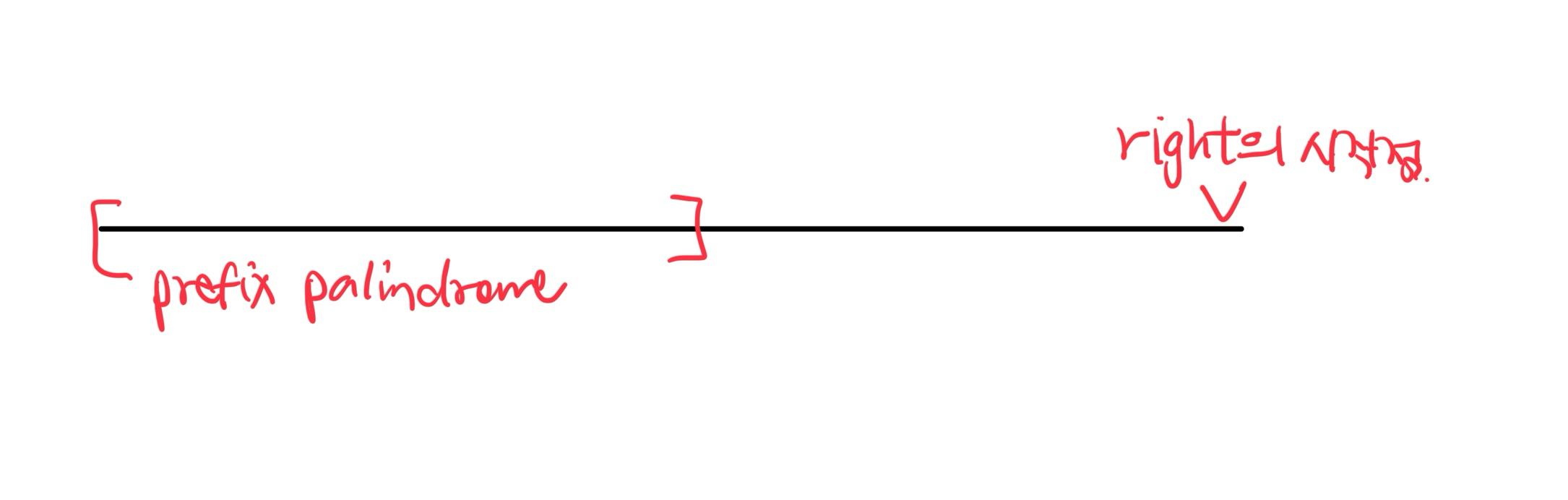 right은 늘 prefix palindrome보다 더 넓은 곳에서 시작해서 0으로 수렴하므로 prefix palindrome을 반드시 다 지나가게 된다. 만약 s에서 prefix palindrome을 제한 부분에서 right과 left가 동일한 지점이 발생한다면 .. 저 process가 끝날 때 left가 그 횟수만큼 오른쪽으로 밀려날 수도 있을 것이다. 저 process를 한 번 실행한다고 해서 반드시 prefix palindrome이 찾아진다고 보장할 수 없는 이유가 바로 그 때문이다. 그렇지만 prefix palindrome은 저 프로세스가 끝났을 때 [0, left)에는 포함되어 있다.