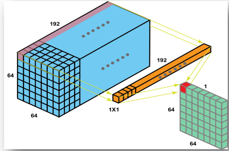 1 x 1 convolution을 사용하여 위치 정보를 보존하면서 차원을 축소한다.