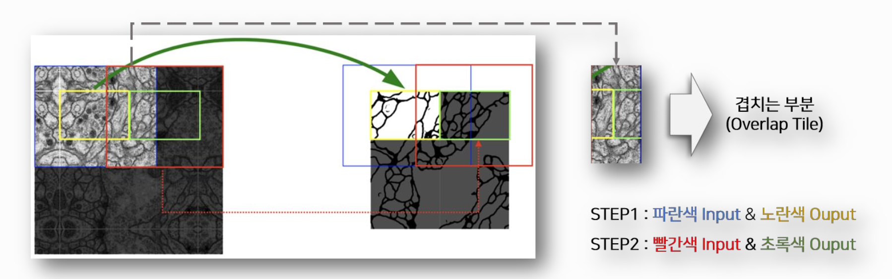 따라서 원하는 크기의 Segmentation Output을 생성하기 위해, 겹치는 부분이 존재하도록 이미지를 잘라 input으로 투입해야 한다.