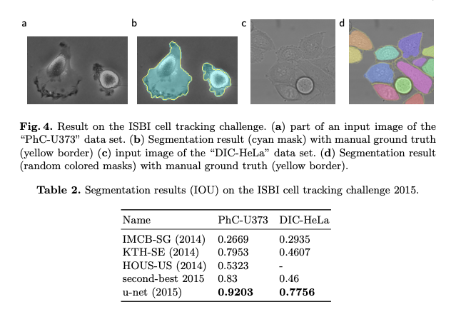 Fig 4 a 같은 데이터로 이루어진 현미경 이미지 데이터셋에서, iou 평균 92 %를 달성했다.