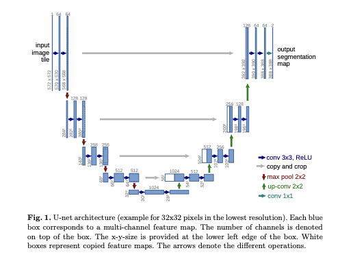 U-Net의 합성곱 연산에서 패딩을 사용하지 않기 때문에 모델의 output 크기는 input의 크기보다 작다는 특징이 있다.