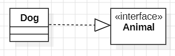 실체화 관계는 한 객체가 다른 객체에게 오퍼레이션을 수행하도록 지정하는 의미적 관계다. 대표적인 예가 인터페이스와 그것을 구현하는 클래스 사이의 관계다. 실체화 관계는 대개 인터페이스와 인터페이스에 오퍼레이션이나 서비스를 제공하는 클래스나 컴포넌트 사이의 관계를 지정하기 위해 사용한다.