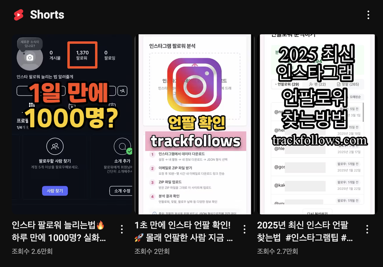"인스타그램 언팔 확인 방법"을 주제로 사용법을 설명하는 쇼츠 영상을 만들어서 유튜브, 틱톡, 인스타 릴스에 업로드했다.