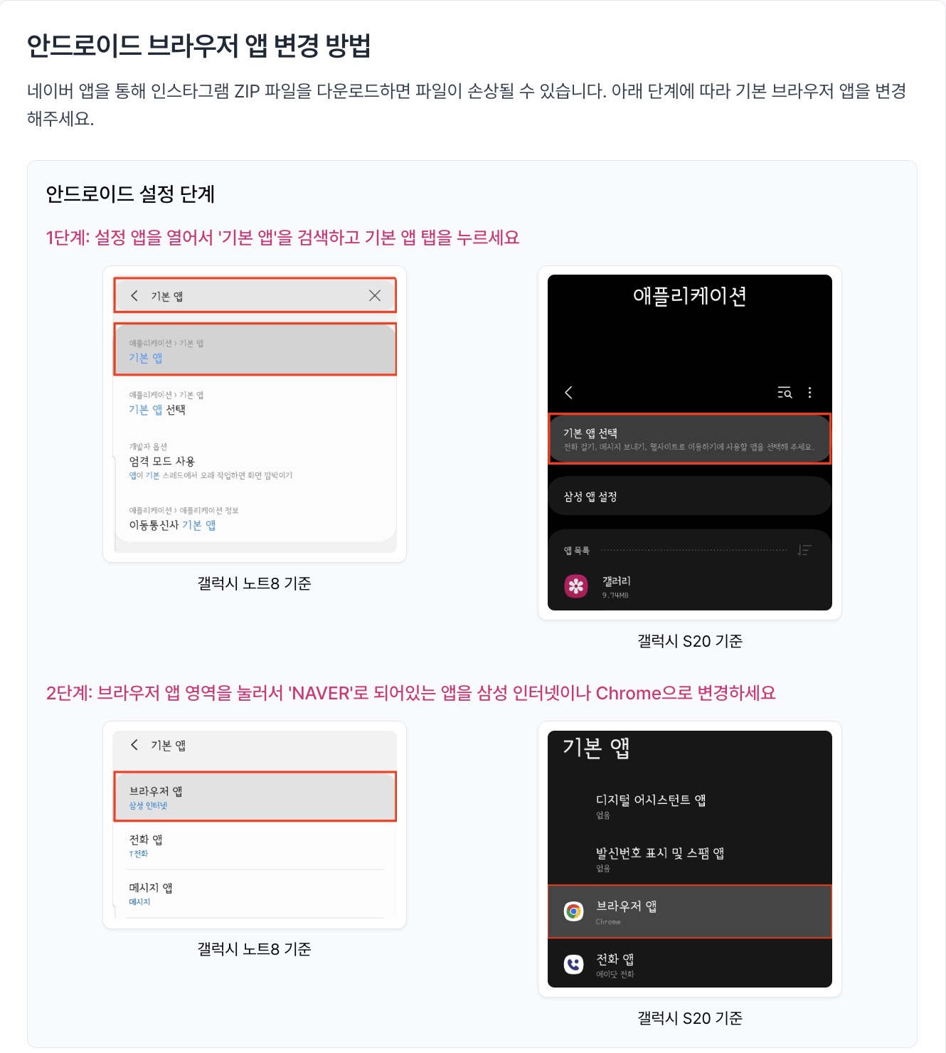 인스타 ZIP 파일을 다운로드할 때 파일이 손상되는 문제였다.