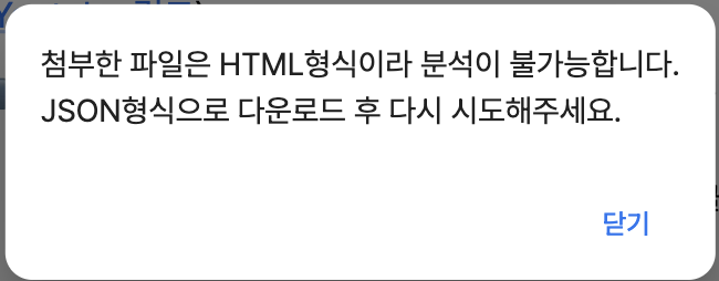 실제로 다른 유명한 서비스에서는 HTML파일을 올리거나, '사용 가능한 모든 정보'를 선택해서 파일을 다운로드 했을경우 아래처럼 에러 메시지를 보여준다: