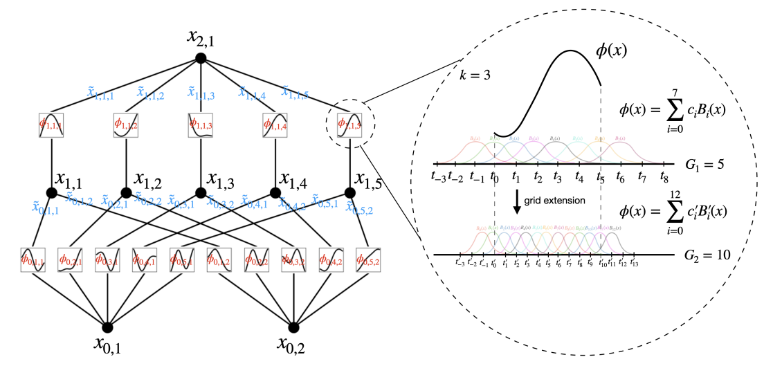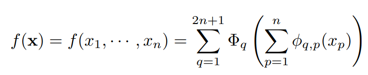 - Kolmogorov-Arnold 정리에 의해, 다변수 연속 함수 f(x)를 단일 변수 연속함수들과 덧셈의 유한한 조합으로 분해할 수 있음