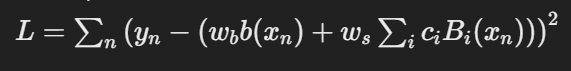 - 학습 대상은 스플라인 기저 함수의 가중치(Ci), 활성함수의 가중치(Wb), 스플라인 함수의 가중치(Ws) 3가지.