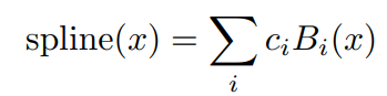 - 스플라인 함수 spline(x) 는 여러 B-스플라인 기저 함수의 선형 결합으로 표현되며, 각 기저 함수는 특정 구간에서만 정의됨.