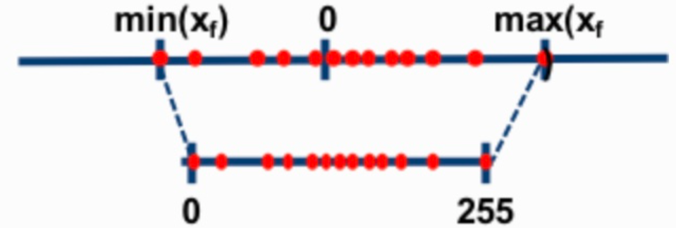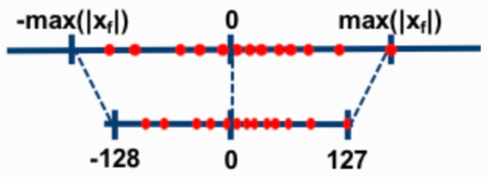 Symmetric : output의 range를 정하는 min, max값의 절댓값이 동일한 경우