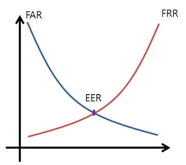 EER (Equal Error Rate) : 오탐률(false acceptance rate, FAR)과 미탐률(false rejection rate, FRR)이 동일해지는 지점을 의미하며, 작을수록 성능이 더 좋음