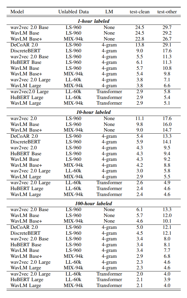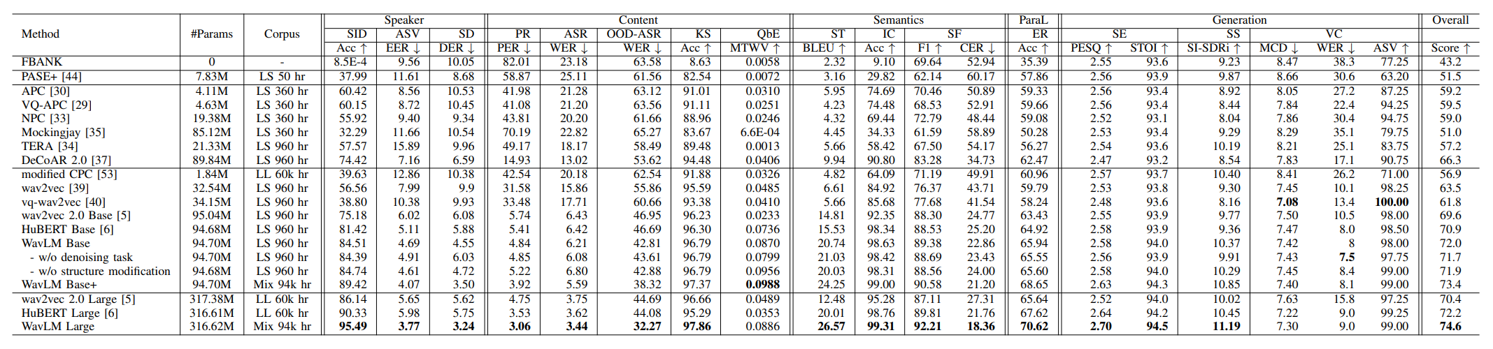 - 모든 면에서 WavLM이 SoTA 성능을 기록함
