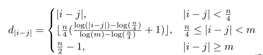 - 3번 경우 - 상대적 거리가 먼 경우(상대 거리가 max offset보다 큰 경우) - 모든 offset을 같은 임베딩에 할당하여, 고정된 값을 사용함 (n/2 - 1)