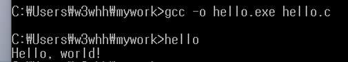 cmd에서 gcc -o hello.exe hello.c 로 실행파일 exe 생성