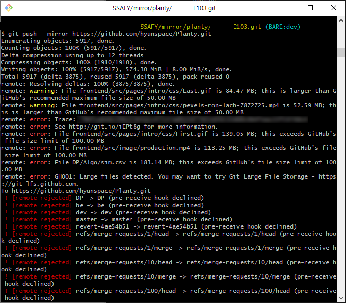 대용량일 때 git clone --mirror도 안되던데 괜찮던가요?